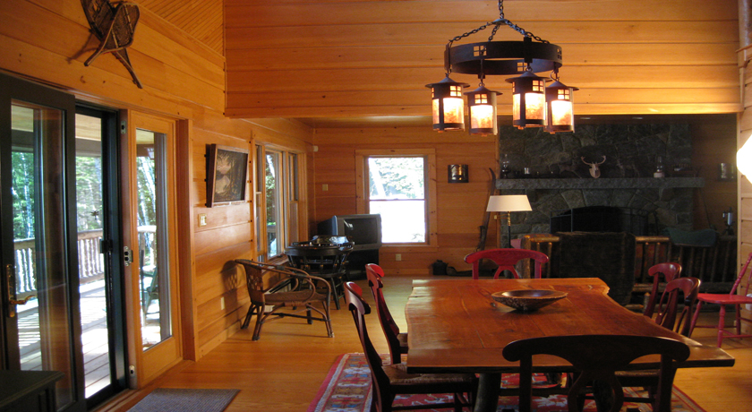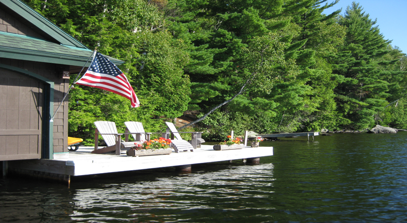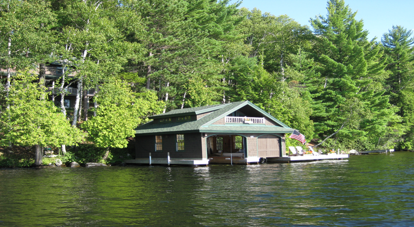 Camp Eagle view is a spectacular 5 bedroom Adirondack style Waterfront Vacation Rental located on the east shoreline of the Upper Saranac Lake with 250 feet of shoreline. The main floor of this beautiful home features a grand stone fireplace in the living room, a kitchen with granite counters and state of the art appliances, the dining room and a 1/2 bath. The 2nd floor has 2 en-suite bedrooms with full baths, a computer desk and a shuffle board game for hours of enjoyment. The lower level has 2 bedrooms, 1 bathroom, family room with TV and a laundry room. The room above the garage holds an additional bedroom with 2 sets of bunk beds and a bathroom. The screened-in porch has a BBQ grill for outdoor cooking and the large deck overlooking the lake offers plenty of space for relaxing and dining while admiring remarkable lake and mountain views. The boathouse has an outdoor boat slip and offers a canoe for guest use or spend the day at the private beachfront swimming to the floating dock in the lake. This exquisite and modern camp is located on a quiet, private bay. A perfect site to enjoy a memorable vacation in the midst of the Adirondack mountains! This home rents Saturday to Saturday during the summer season with a 7 night minimum stay. Booking Fee $50 Cleaning Fee $300 Security Damage Deposit $1000
